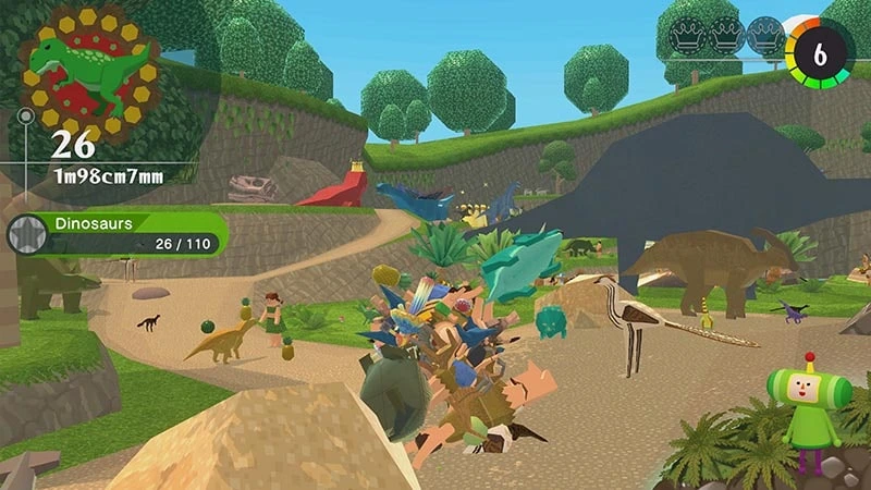Once Upon a Katamari is a sequel that updates the series without breaking its core and plays comfortably on Switch. You start with a small ball, grow by collecting objects, and complete stage objectives. This time, the “time” theme drives the game: prehistoric era, Edo period, ice fields, the Wild West… As the setting changes, so do object placement, speed, and risk. In short, the formula is the same; the surroundings are richer.